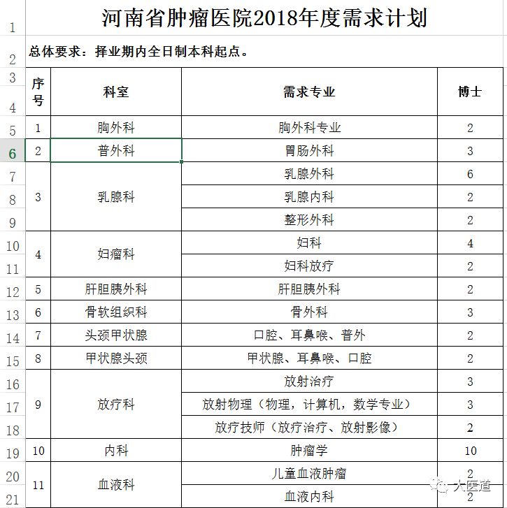 河南省肿瘤医院是一所集医疗、科研、预防、教学、康复为一体的三级甲等肿瘤专科医院。现将招聘博士毕业生有关事宜通知如下:
