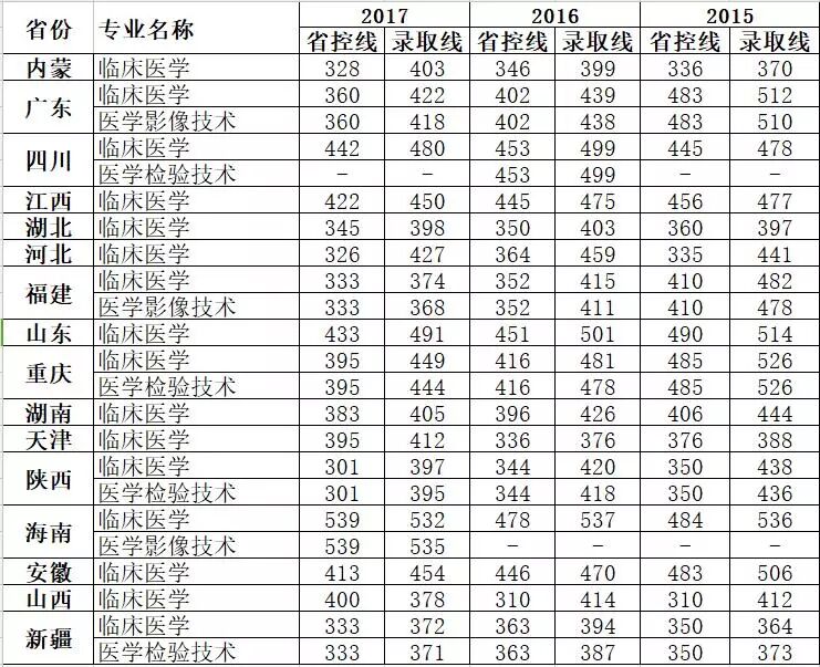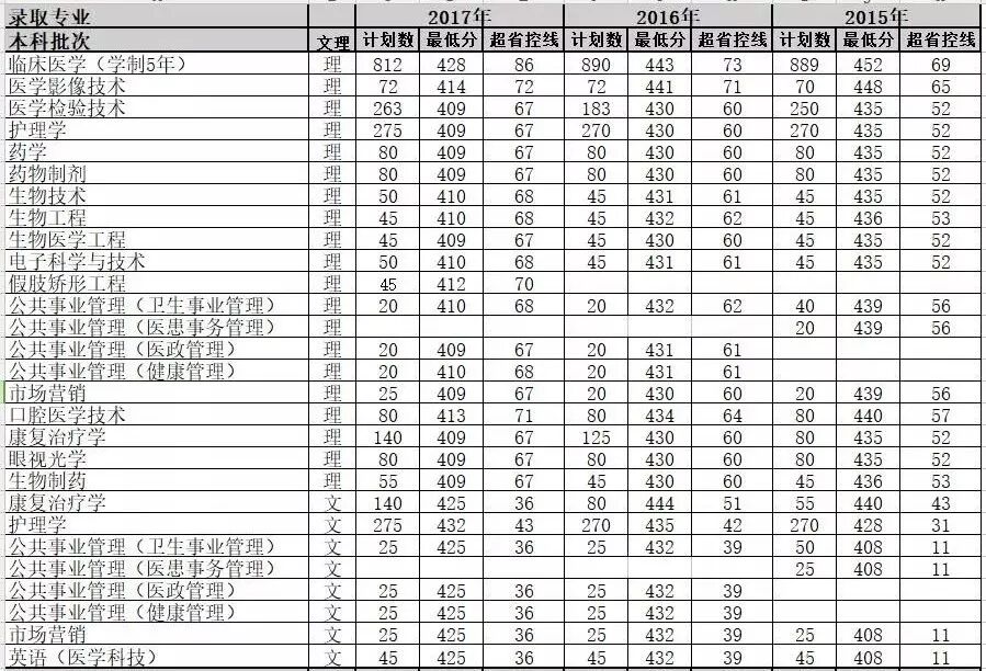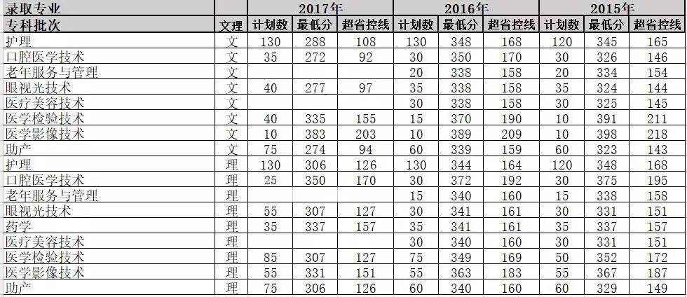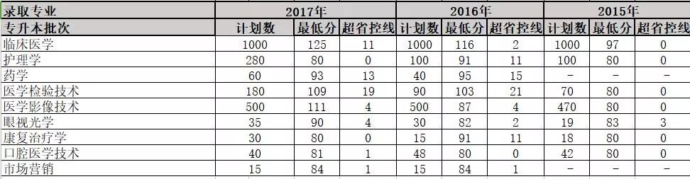2015年——2017年本专科各专业招生录取情况