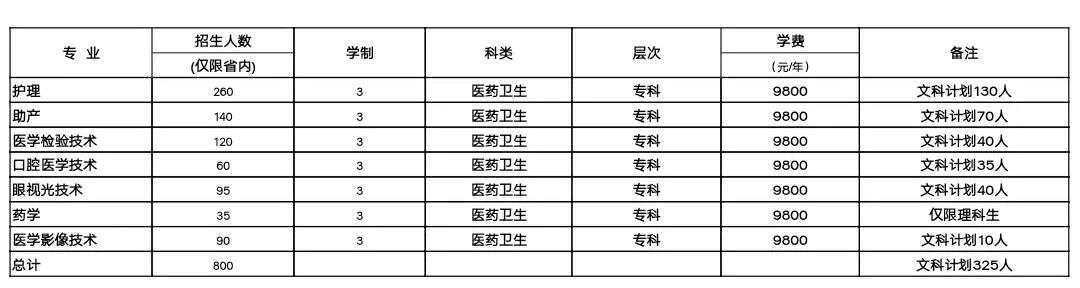 2018年专科招生计划