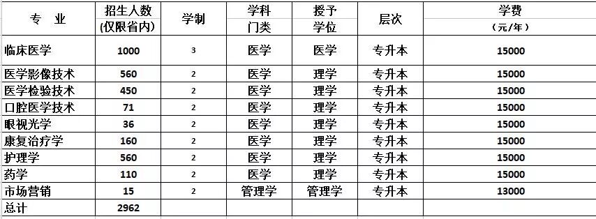 2018年专升本招生计划