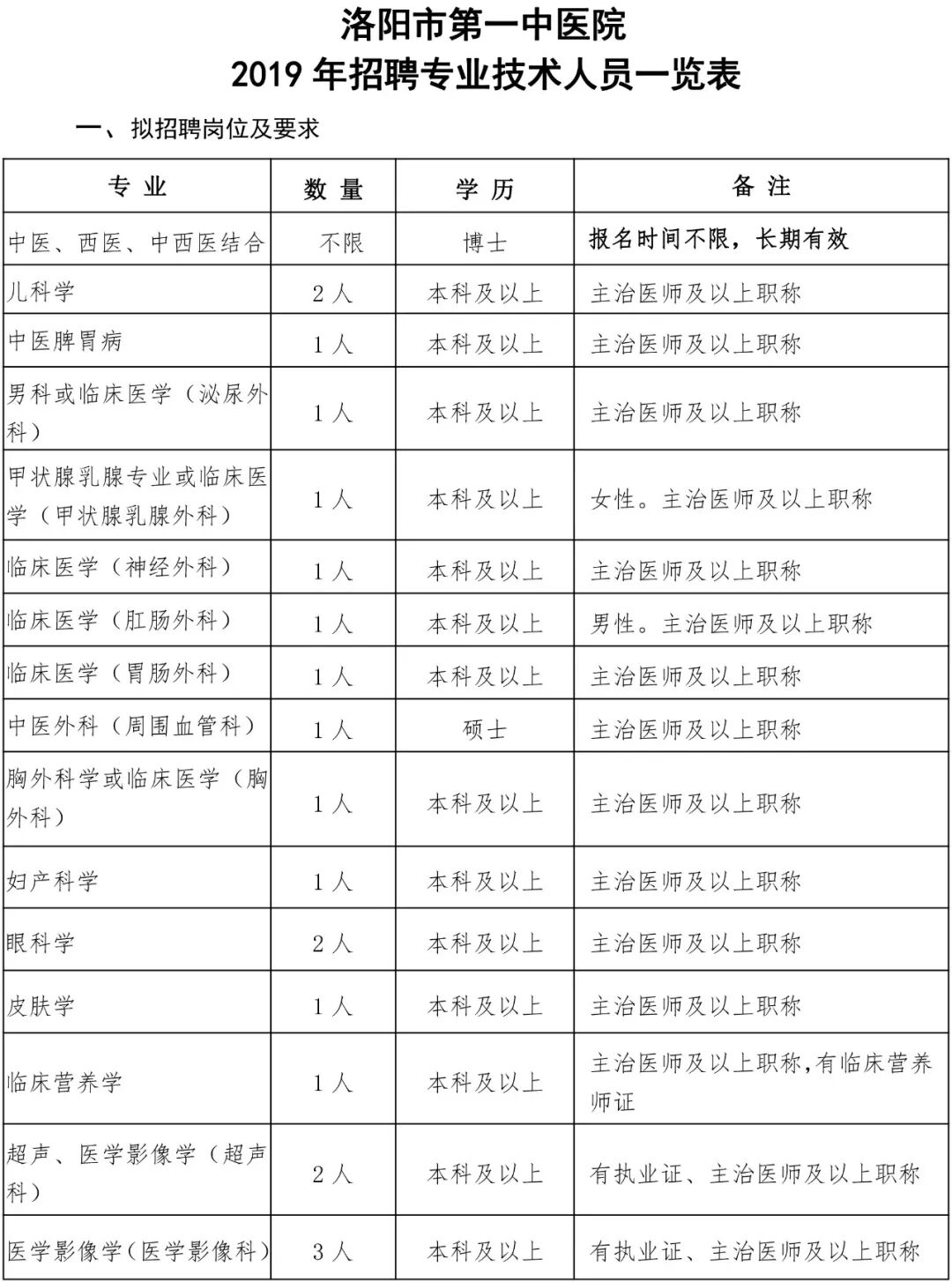 5.岗位所需的专业和其他条件(详见附件《洛阳市第一中医院2019年招聘专业技术人员一览表》)。
