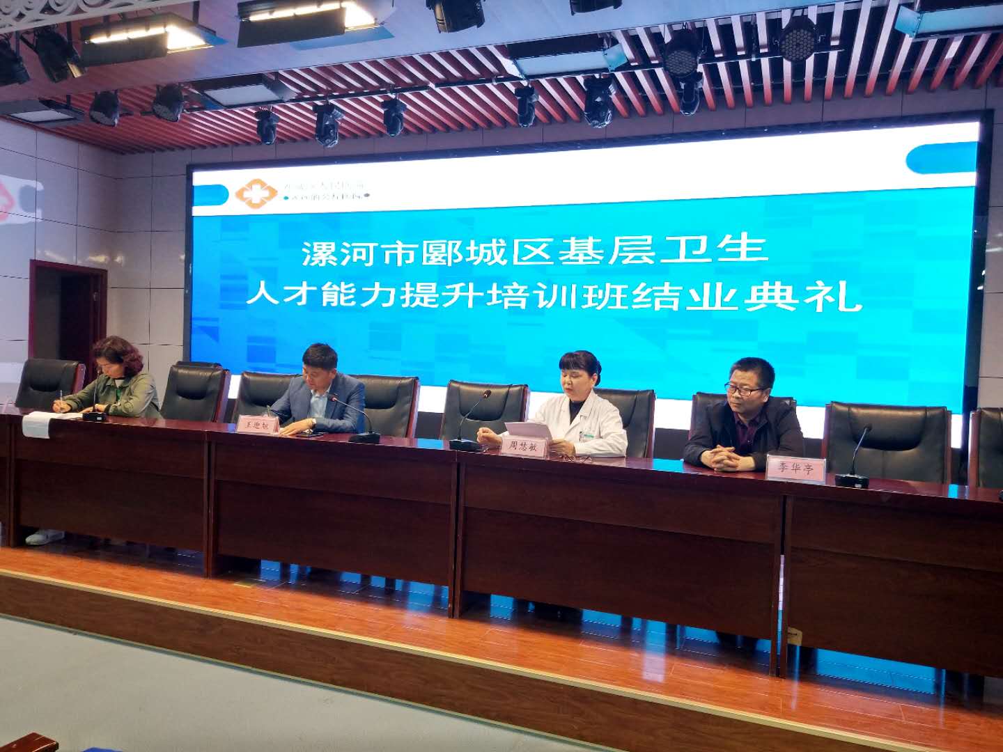 医药卫生网讯(记者王明杰 通讯员钮 娜 张敬林)4月22日下午,由漯河市郾城区卫生健康委、郾城区人民医院联合举办的郾城区2019年基层卫生人才能力提升培训班结业典礼在郾城区人民医院第三会议室隆重举行。区卫生健康委副主任王迎旭、基层卫生股股长钮娜,郾城区人民医院业务院长周慧敏、医务科科长李华亭、培训班相关负责人、授课专家代表和培训班学员参加了结业典礼。