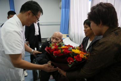 经过医护人员的精心治疗和照护,李云亭身体逐渐康复,10月16日上午在老人93岁大寿之际,老年科主任刘立、护士长袁征强及老年科全体医护人员前往病房看望“老英雄”,并送上温暖关怀和崇高敬意。