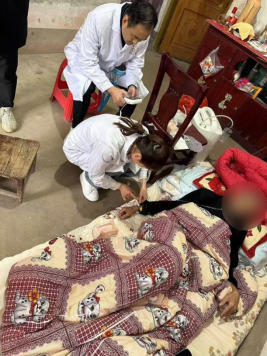 由于病情进一步恶化,苏大爷强烈要求出院回家。10月19日,苏大爷出院后第三天,邢文予接到了其家属的求助电话,原来苏大爷的电子泵内的药物快用完了,且状况欠佳,无法到医院就诊,咨询邢文予,能否上门帮助更换泵内药品。邢文予毫不犹豫地答应下来,当即安排科室人员配制好泵入药物。次日,邢文予和中心手术室护士长余贵云等同事一起,驱车前往胡族镇郑桥村苏大爷家中。
