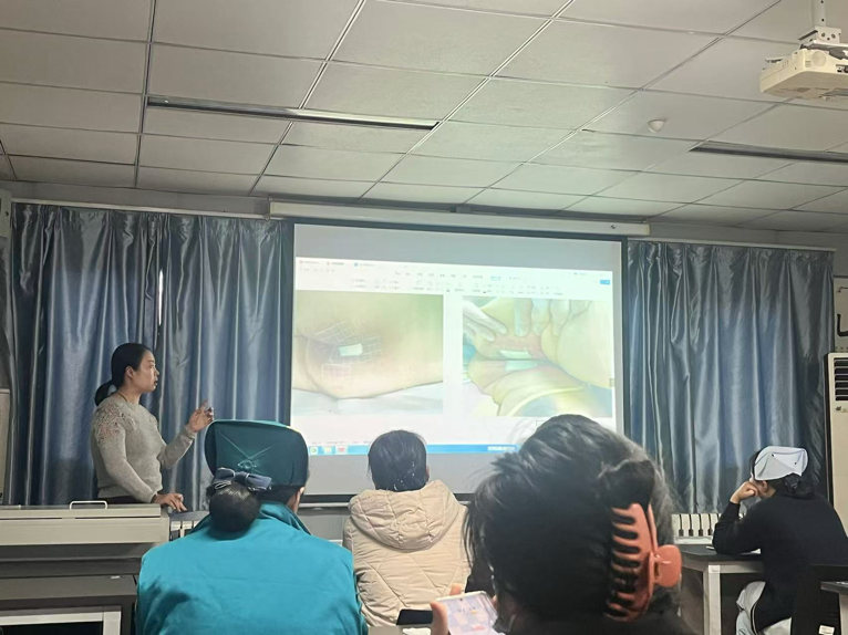 首先,杨琼向大家介绍了每年 11 月的第三个周四,是世界压伤预防日。这并非一个普通的日子,它时刻提醒着大家在医疗护理工作中极易被忽视却又至关重要的一环——压伤预防。为此,杨琼精心准备了六张各种类型的伤口图片,指导大家更好地选择敷料粘贴的方法,大家共同讨论、分析,并鼓励小组成员积极在群内发图进行病例分享,大家深刻认识到伤口护理的复杂性和专业性。准确的伤口分期是制定有效护理策略的基础,而个性化的护理方案则是促进伤口愈合、提高患者生活质量的关键。
