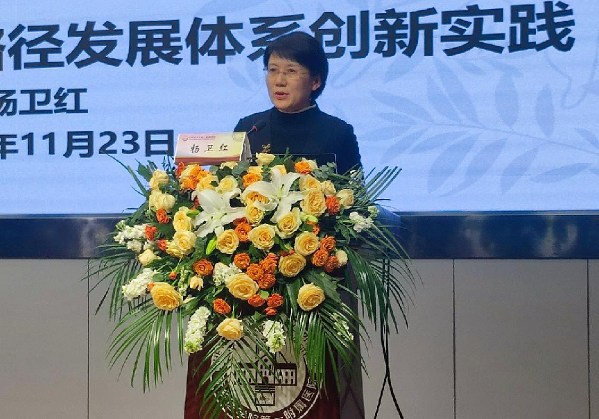 王悦在致辞中对新乡医学院第一附属医院在护理人文建设方面的成绩给予了高度评价。她说,党中央对保障人民健康的高度重视和以人民为中心的为民情怀,为人文护理的高质量发展带来了前所未有的历史机遇和有利条件。在此背景下,新乡市医学会作为党和政府联系医学科技工作者的“桥梁、纽带”和“参谋、助手”,将继续发挥作用,推广先进护理理念和技术,为护理同仁提供支持与帮助。她呼吁新时代的护理人员不断学习创新,将专业技术与人文关怀结合,助力健康中国建设。