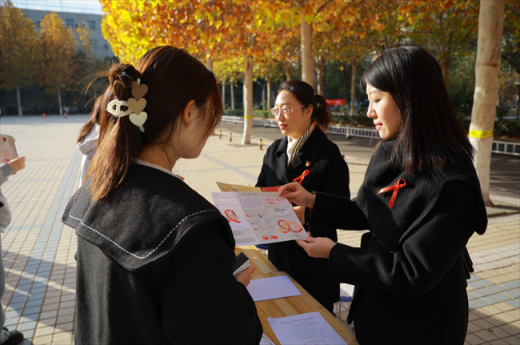 室内宣讲活动结束后,室外宣传活动在学校南校区五环广场继续进行,活动通过布置宣传展板、发放宣传页、张贴宣传海报条幅、有奖问答等多种方式进行。对艾滋病防治知识和国家政策进行了广泛宣传,同时现场解答学生提出的问题,将“社会共治,终结艾滋,共享健康”的主题思想植入人心,切实提高了大学生群体对艾滋病的知晓率和自我防护意识。