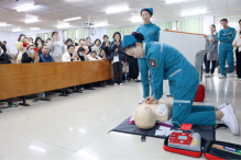 在商丘师范学院,商丘市第一人民医院疾病预防控制科副科长赵翠围绕大学生群体特点,向同学们讲解了艾滋病的预防知识,倡导“做自己健康第一责任人”的理念,指导同学们识别高风险行为,普及主动检测以及药物阻断等相关知识。该院急诊门诊护士长魏海龙讲解了心肺复苏的相关知识,急诊门诊护士董庆祝和杨莉演示了心肺复苏和AED的使用方法,活动现场,商丘师范学院的师生们积极踊跃地参与操作练习,纷纷表示受益匪浅。