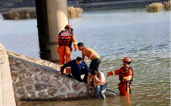 当天下午,王二雷经过涧河桥时,见一女子正在江里挣扎,作为一名红十字救护员的他奋不顾身跳入寒冷的河水中,展开了一场与时间赛跑的救援行动,他不顾河水的冰冷,心中只有一个念头:救人!就在快要接近女子时,却发现系在自己腰上的救援绳不够长,王二雷果断解开系在腰间的救援绳,迅速游上前抓住女子奋力将其拖到岸边。因救助及时,该女子身体并无大碍,王二雷和消防队员立即对其进行心理疏导并及时送往医院接受进一步治疗。