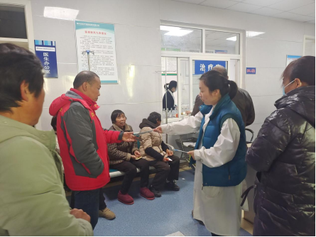 太尉镇卫生院组织医务志愿者在医院门口开展健康宣教、义诊服务活动。