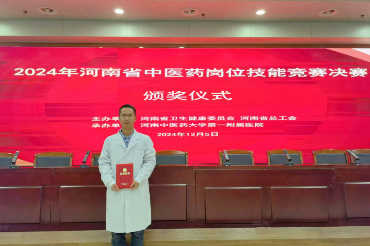 医药卫生网讯(记者王明杰 通讯员付菊花)12月5日,2024年河南省中医药岗位技能竞赛圆满结束。经过激烈角逐,漯河市中医院脑二科副主任医师孙亚中脱颖而出,荣获个人二等奖。这是继2018年孙亚中同志获得省级中医药岗位技能竞赛一等奖之后再次获得该奖项。
