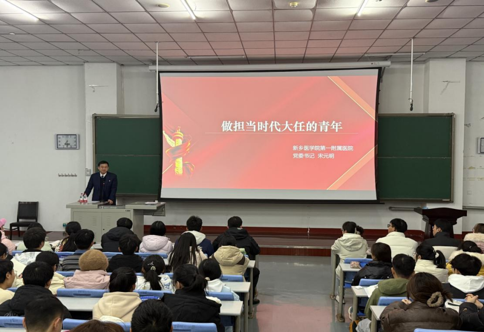 2024-12-12 来源:医药卫生网 - 医药卫生报 浏览:次医药卫生网讯(记者常俊伟 通讯员刘树茂 陈毅)12月9日,新乡医学院第一附属医院(第一临床学院)党委书记宋元明以“奋进新征程,跑出新时代青年的最好成绩”为主题,为第一临床学院学生讲授思政课,2024 级全体学生及第一临床学院辅导员参加。