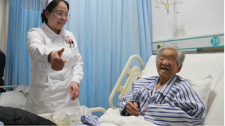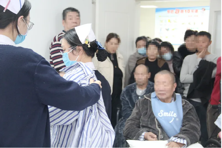最后,医务人员进行了满意度问卷调查,为患者发放新服装,帮助患者从身上脱下旧的病员服穿上新衣服,换上新衣的患者脸上洋溢着幸福的笑容,现场氛围活跃而又温馨。