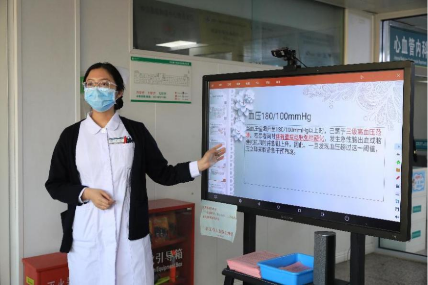讲座由心血管内科经验丰富的护士韩璐主讲,她以《高血压为何造成脑出血》为题,深入浅出地剖析了高血压与心脑血管疾病的紧密联系。韩璐首先强调了预防心脑血管疾病的重要性,指出合理控制血压是维护心血管健康的关键。她详细讲解了正常血压的范围,提醒患者要密切关注自己的血压状况,并分享了测量血压的最佳时间点,以便准确监测血压变化。此外,韩璐还就如何在日常生活中避免血压升高给出了实用的建议,包括合理饮食、适量运动、保持良好心态等,鼓励患者通过健康的生活方式积极干预高血压。