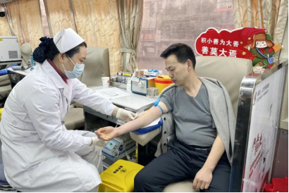 献血现场,医院职工在血站工作人员的指导下有条不紊地排队等候,依次完成填表登记、体检、化验等前期工作。确定符合献血条件后,大家纷纷挽起袖子,用自己的热血传递一份爱心。