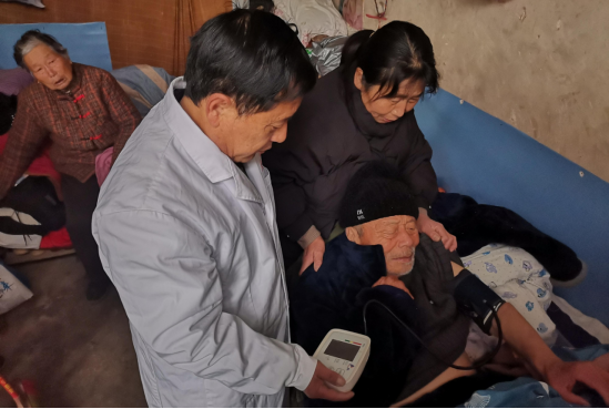 “大爷,您的血压65mmHg/135mmHg,心率每分钟78次,血压、心率都正常,该吃吃,该喝喝、啥事儿别往心里搁。”在民权县伯党乡双楼村委大马庄村83岁村民马振连(化名)家里,村医李广歆给他测量血压和听诊后,饶有风趣地安慰道。