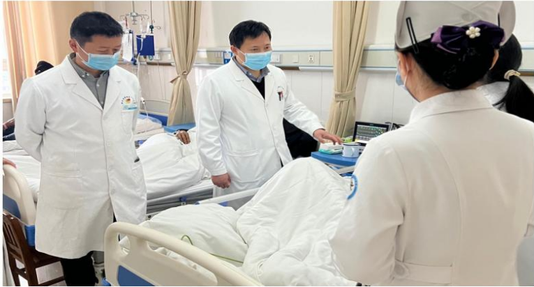 每到一处病区,吕化和李青峰都详细了解各个科室假期值班、急危重患者救治等情况,并亲自来到危重患者床前询问病情、查看病历,详细了解患者诊疗救治情况,为下一步诊疗计划提出了指导性意见和建议。并特别强调病情观察的重要性,提醒医护人员加强质量与安全管理,对于危重症患者,每一个细微的变化都可能影响到治疗方案的调整和患者的预后。同时要求医护人员要时刻保持警惕,密切关注患者的各项监测指标,不仅要关注数值变化,更要分析其背后反映出的病情动态,确保各项医疗护理措施精准到位。