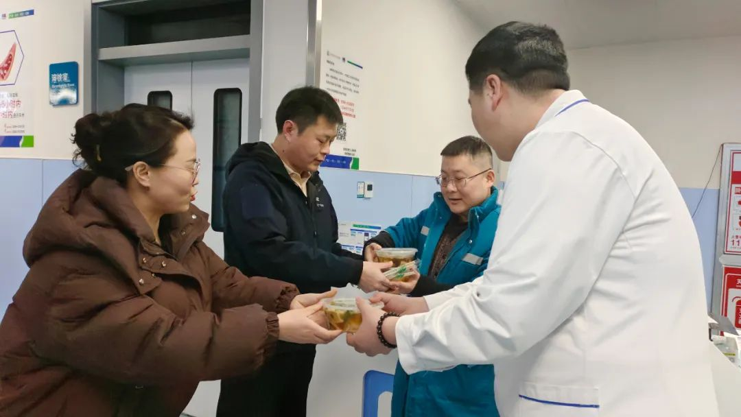 热腾腾的饺子里包的是暖暖的关爱,让患者、家属和职工感受到无限的关怀。慰问队伍每到一处,都与患者和家属亲切交谈,了解他们的病情和需求,鼓励他们保持乐观的心态,积极配合治疗,同时为他们送上寓意吉祥如意的饺子,祝愿患者早日康复。