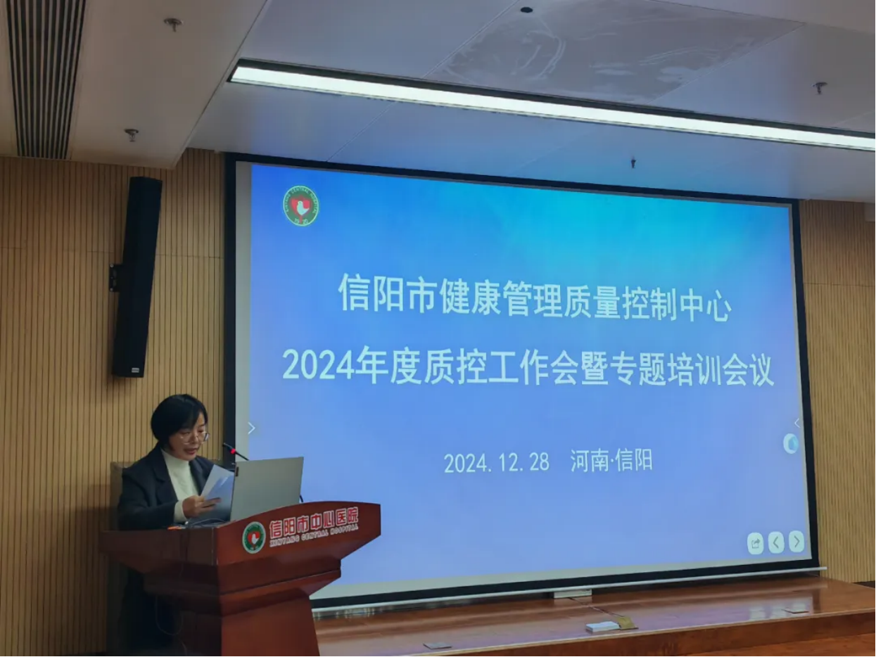 信阳市健康管理质控中心主任委员、市医学会健康管理学分会主任委员、信阳市中心医院健康管理科主任张静就《2024年信阳市健康管理质量控制中心工作》,从基本情况、专项指标的落实、存在的问题、整改措施四个方面进行了详实的阐述。对落实健康管理质控工作改进目标及市域质控体系建设提出指导建议,为2025年健康体检与管理工作设定了明确目标,全力推动全市健康体检与管理同质化、高质量发展。