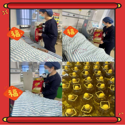 该院介绍,一袋袋大米、一桶桶食用油、一袋袋面粉等生活必需品整齐码放,代表着医护人员对患者的满满祝福。当这份精心准备的礼品送到患者手中时,他们的脸上绽放出了幸福的笑容,感激之情在心底流淌。欢快的笑声和温馨的祝福,从每一个角落传来,汇聚成一片欢乐的海洋,温暖了整个血液透析室。