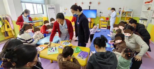 在轻快悦耳的音乐声中,治疗师们在融合课堂上,引领着家长和孩子们一同做起了律动操《欢乐闹元宵》。瞧,孩子们伴随着节奏轻轻摇摆着身体,在家长的协助之下,认真地学习并模仿着相应的动作,整个课堂都沉浸在这欢乐祥和、爱意满满的氛围之中,仿佛每一个动作里都藏着对美好生活的期许,对团圆佳节的深深祝福。