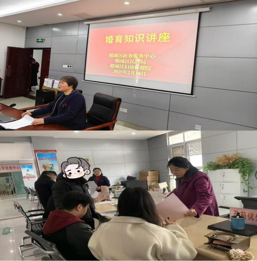 2月14日,郾城区妇幼保健院联合郾城区民政局及郾城区政务服务中心开展了婚育科普宣讲活动。活动现场,郾城区妇幼保健院专家以《婚育健康知识》为主题进行了系列讲座,科普了婚前医学检查,孕前优生检查,科学备孕、避孕知识及女性生殖健康等方面的知识。同时,设置优生优育、婚前知识咨询台,并向备孕人群免费发放叶酸、避孕用品及优生优育宣传资料。