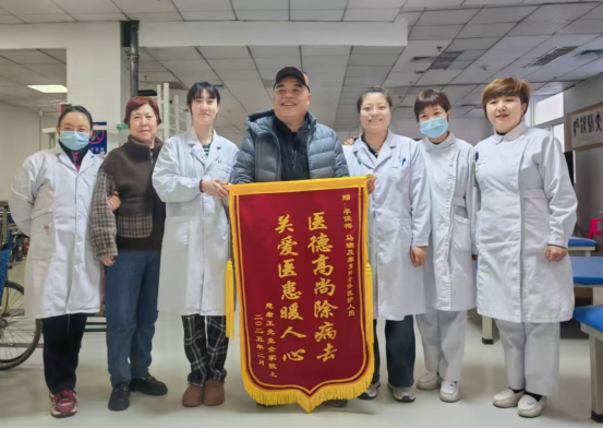 一位曾因急性脑梗死导致上肢无法抬举、下肢行走困难的患者家属,将一面印有“医德高尚除病去 关爱医患暖人心”的锦旗送到科室,以此表达对康复科全体医护人员的诚挚谢意。该患者入院时因脑梗死导致肢体功能严重受限,生活完全依赖家人,身心备受煎熬。面对患者及家属的焦虑与期待,康复科团队迅速制定个性化康复方案,以“早期介入、科学训练、身心同治”为原则,结合现代康复技术与人文关怀,开启了一场康复攻坚战。在康复过程中,PT(物理治疗)治疗师李俊梅针对患者肢体运动功能障碍,通过关节活动度训练、肌力强化及步态矫正,逐步改善其下肢行走能力;OT(作业治疗)治疗师马瑞则聚焦上肢功能重建与日常生活能力提升,设计穿衣、进食、洗漱等场景化训练,帮助患者重拾生活自理技能。两位治疗师默契配合,每日根据患者进展动态调整方案,用专业与耐心点亮康复希望。在康复科主任杨雪萍带领下,治疗师李俊梅、马瑞不仅用精湛技术护航康复,更化身“心灵导师”,以一句句鼓励、一次次示范、一场场趣味训练游戏,帮助患者重燃信心。科室医护团队24小时贴心守护,从饮食指导到心理疏导,从家庭康复教育到夜间陪护建议,将周到服务融入每一个细节。经过数月的系统治疗,患者上肢功能显著改善,可独立完成穿衣、用餐等日常活动,下肢行走稳定性大幅提升,现已基本实现生活自理。“没想到还能靠自己站起来!感谢康复科每一位医生、治疗师,你们是真正的生命重建者!”患者激动地说。