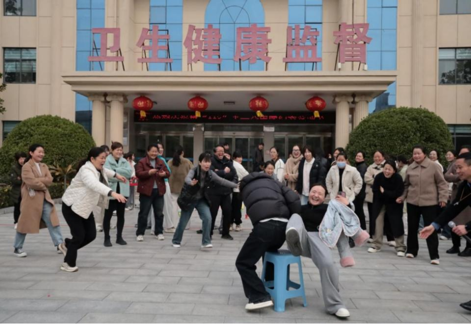 随着工会主席李东良宣布趣味活动开始的口令,在各组裁判的引导下,趣味竞技环节逐项展开。拔河绳系着的红绸带在春风中轻扬,4支由科室混编的“战队”跃跃欲试。跳绳、抢凳子、接力往返跑、套圈等等小游戏,女性干部职工踊跃参加,将此次的活动推向了高潮。活动现场气氛热烈,在欢声笑语中释放压力,展现了疾控人坚韧、执着与活泼、自豪的良好形象。