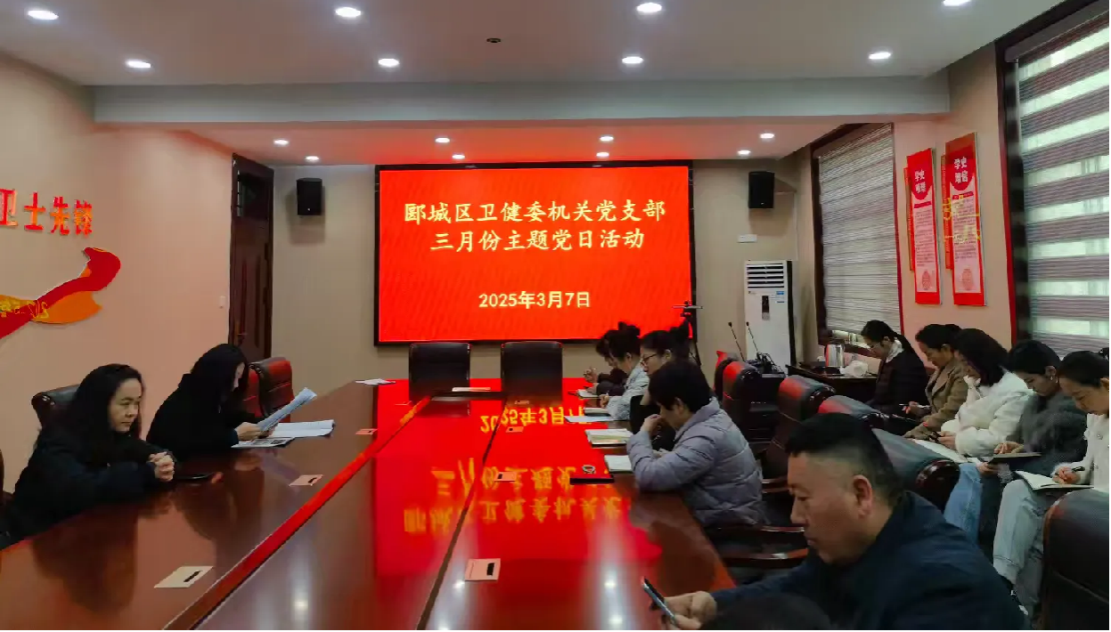 医药卫生网讯(记者王明杰 通讯员袁子莹)3月7日上午,漯河市郾城区卫生健康委机关党支部在委三楼会议室组织全体党员开展3月份主题党日活动。郾城区卫生健康委党组成员、副主任、疾控局专职局局长吕珂主持并领学主题党日活动精神。