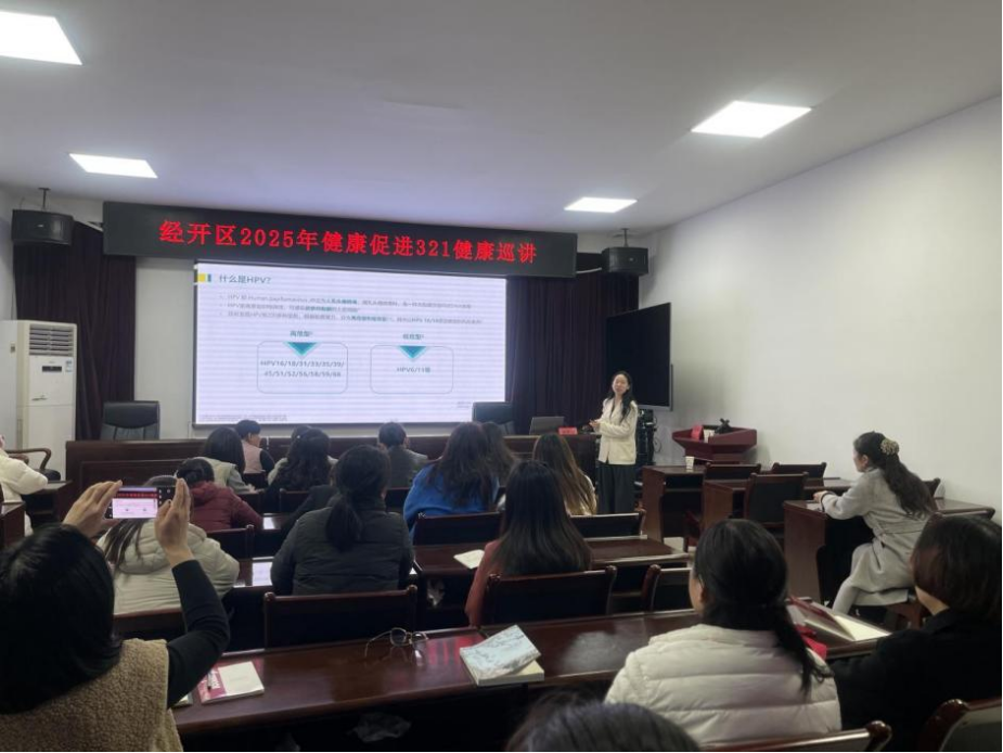 濮阳经开区卫生局副局长张洁出席、疾控主任田振华主持。卫生局及疾控中心全体职工、乡镇卫生院及社区卫生服务中心代表50余人参加。邀请濮阳市妇幼保健院专家主讲,围绕宫颈癌、乳腺癌的防治展开,结合案例分析与互动答疑,内容详实生动。