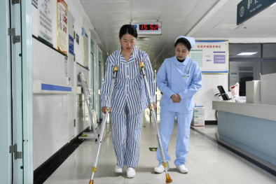 拄拐行走体验。体验者护士李晓玲说,刚开始使用拐杖时,可能会觉得有些新奇,但行走一段时间后,胳膊和肩膀会因为持续支撑身体而感到疲劳和不适。同时,由于一侧腿部行动受限,身体的大部分重量会集中在另一侧腿部,长时间行走后,腿部会感到非常疲惫。此外,由于患肢不便着地,身体重心会倾斜,时间久了会感到行走不稳。通过这次亲身体验,今后应给予患者更多关怀,在指导患者使用双拐时,安全是首要关注点。调节拐杖高度至患者腋窝下方三横指处,这一高度能确保患者使用时身体受力均匀。初次使用双拐,务必有家人在旁陪伴,且活动范围不宜远离床铺,可先在床边进行适应性练习。使用过程中,建议在患者腋下垫上小软枕,以此减少腋下皮肤与拐杖长时间摩擦、受压,有效预防压疮的发生。