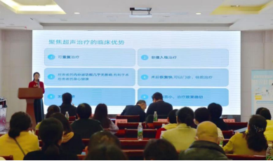 濮阳油田总院肿瘤科副主任医师李伟芳带来了关于聚焦超声技术的精彩分享。她深入浅出地讲解了聚焦超声消融术的治疗原理,强调其通过将超声能量精准聚焦于体内病变区域,从而有效杀死癌变细胞,成为无创手术治疗领域的典型代表。该技术以其独特的创新治疗理念,为众多患者带来了福祉。她通过丰富的案例展示,直观地呈现了聚焦超声技术在临床中的卓越表现。