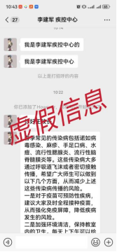 2025-3-19 来源:医药卫生网 - 医药卫生报 浏览:次医药卫生网讯(记者王明杰 通讯员刘莉)漯河市郾城区疾控中心3月19日介绍,近日,有微信名以“李建军 疾控中心”名义向郾城区中小学校发布公益直播公开课的虚假信息。经核查,此为不实信息,郾城区疾控中心并未发布过相关信息。此行为严重误导公众认知,干扰正常公共卫生工作秩序,造成了不良社会影响。且郾城区疾控中心在职职工、离退休人员中均无李建军此人。