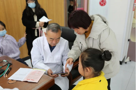 在中医馆诊室门前,慕名而来的患者在志愿者的引导下按序排队等候就诊。在诊断过程中,黄甡教授充分运用中医药的望、闻、问、切四诊法,通过细致的观察和深入的询问,结合患儿的体质、年龄、性别等因素,为患者制定个性化的治疗方案。黄甡教授不仅医术高超,而且态度和蔼可亲,让孩子在轻松愉快的氛围中完成了诊疗过程。
