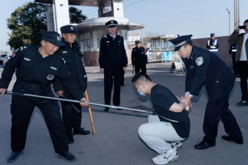 当天16时,演练正式开始,一名“暴恐分子”手持凶器强行闯入医院,执勤安保人员见状迅速拦截,按响警报呼叫增援,医院保卫科收到警情后立即拨打“110”报警电话。宋城派出所接到警情指令后,迅速集结警力、携带警械装备赶往现场。到达现场后,迅速在周边拉上警戒线,并听从指挥员安排,手持防暴钢叉、盾牌等警械器具迅速形成作战队形,将歹徒牵制在可控范围内,趁其不备快速出击,火速将歹徒压倒、铐上手铐并带离现场,成功解除了危机。