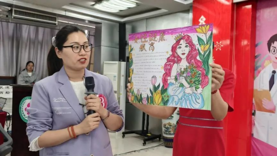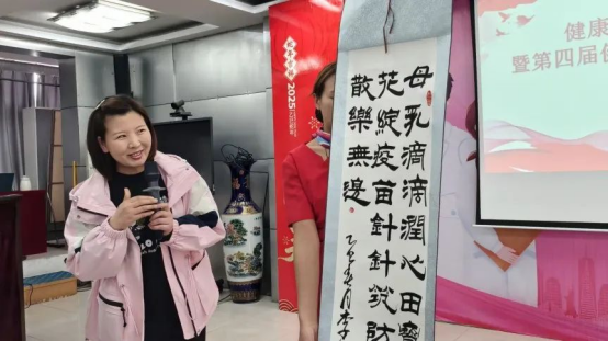 书画传情,传统文化与健康理念交融活动伊始,一场以健康为主题的文化类书画展示拉开帷幕。以党支部为单位,党员医务工作者们执笔挥毫,将健康理念融入艺术创作。现场展出的7幅作品中,既有描绘母婴关爱的自创诗词,也有笔力遒劲的书法作品《合理膳食》《心静可通万事理,心平能愈三千疾》;还有医护人员手绘的手抄报《女性健康教育》《我运动 我快乐》《顺产进行时》。创作者们通过作品解读,传递出“健康管理”“母婴健康”等核心观念。妇科医生尚海方说:“女性健康关乎家庭幸福,我们希望用艺术引发公众对妇科疾病早筛早治的重视。”