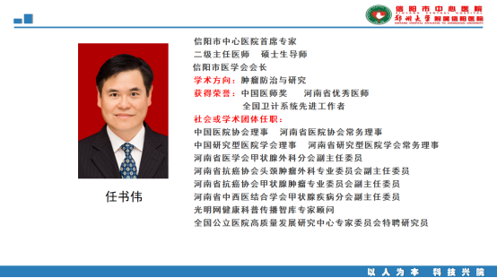 肿瘤外科主任医师:任书伟 信阳市中心医院首席专家 信阳市医学会会长