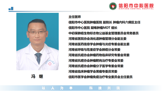 肿瘤内科主任医师:冯继 信阳市医学会肿瘤免疫治疗专委会主任委员(团队组长)