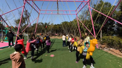 勇攀高峰,携手跨越每一步。在“勇攀高峰”亲子攀登环节,家长和孩子共同挑战游乐场的攀爬长廊。有的孩子起初害怕高处,但在父母的陪伴和保护下,他们一步步向上,最终成功登顶。妇幼保健院院长谢晓杰表示:“这样的活动不仅能锻炼孩子的平衡能力,更重要的是让家长和孩子在协作中建立更深的情感联结。”攀登的过程,恰如孤独症家庭面对的每一天——只要携手同行,就没有越不过的高山。