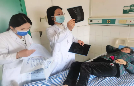 查房现场,马艳云深入中医科住院病区,针对基层常见的颈椎病、肩周炎、腰椎间盘突出症、膝关节病、慢性疼痛等患者开展教学查房。马艳云认真倾听患者的病情,细致查体,研读影像片,针对中老年人的颈肩腰腿痛提出自己的诊疗思路,并指出中老年人的疼痛尤其要注意鉴别诊断,避免漏诊误诊。