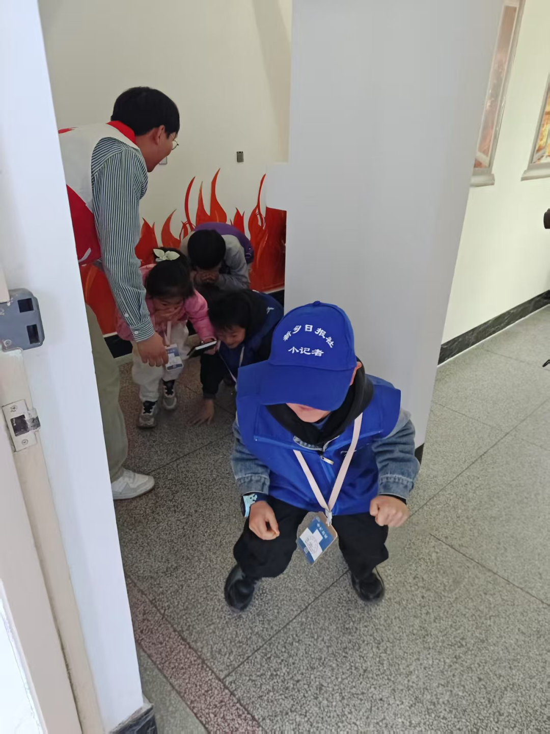 “起火啦!”随着警报声响起,小记者们迅速进入实战状态。住培医师母建慧带领的“消防特训营”别出心裁:在模拟烟雾通道设置“伤员”障碍,考验团队协作;用不同材质的“火焰”训练灭火器选择能力。11岁的李同学在成功扑灭“油锅火情”后兴奋地说:“我现在也是消防小英雄了!”而湿毛巾折叠比赛、逃生绳结挑战等趣味环节,让安全技能转化为终身受用的生存本领。