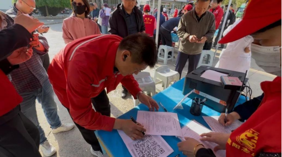 献血现场,油田党员干部职工在血站工作人员和志愿者的引导下,有序进行信息登记、健康征询、血液初筛等环节。符合献血条件的人员依次步入采血车,挽起袖子参与献血,整个流程秩序井然、规范高效。采血现场温情涌动。