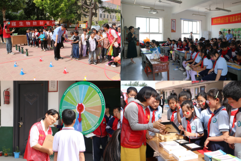 活动现场,漯河市妇幼保健院、舞阳县人民医院为全校师生和家长代表进行了免费体检;专家讲师围绕合理膳食、心理健康等课题为学生和家长授课;志愿者通过套圈、投壶、健康大转盘等趣味游戏和发放科普问卷、宣传品的方式向师生宣传普及健康知识、病媒生物防制知识,并对校园内外进行了全面彻底的卫生清洁和病媒消杀。