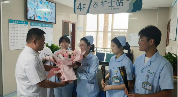 平桥区精神病医院班子成员手捧鲜花走进各科室,向每一位护理工作者送上节日的问候与关怀。
