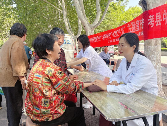 活动现场,医务人员通过分发宣传材料、悬挂条幅、设置展板及面对面宣传、义诊活动等方式,积极向过往的群众介绍国家基本公共卫生服务项目免费提供的12项具体内容和家庭医生签约服务的内容和好处,从日常健康管理到慢性病防治,签约服务涵盖全方位健康关怀。同时,还为居民免费测量血压、中医把脉,仔细询问他们的身体状况,给予专业的健康建议和治疗方案。现场互动氛围温馨融洽,受到居民的一致好评。