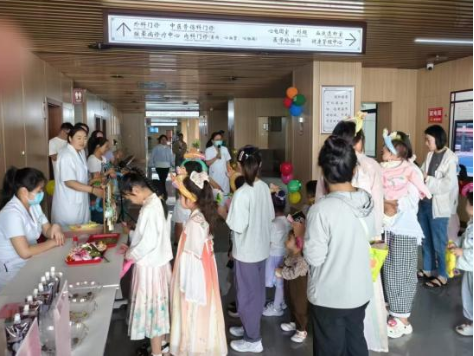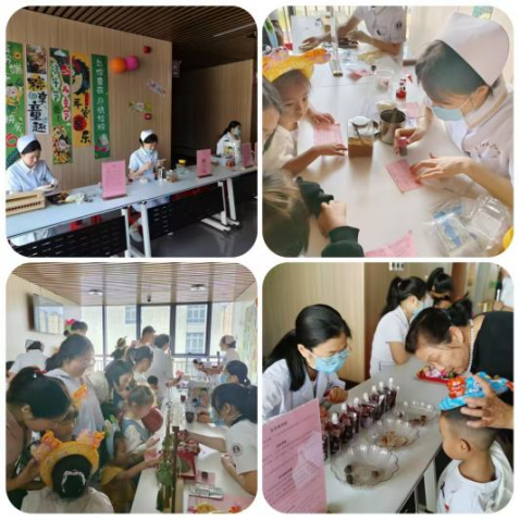 为了增加活动的趣味性,激发孩子们的求知欲,该院儿科特意将活动设计成逛中医铺子的形式。香囊铺里,艾叶、薄荷等中药材香气四溢,孩子们在专业人员的指导下认识药材、了解香囊驱蚊防疫的功效;在山楂丸制作铺,孩子们亲手将原料揉制成丸,体验着制作的乐趣;在三伏贴制作铺,一边为孩子们现场贴敷体验,一边讲解“冬病夏治”原理,让孩子们对中医有了更深刻的认识;在酸梅汤制作铺,通过手把手的耐心指导,孩子们品尝着自己制作的酸梅汤,脸上洋溢着满足的笑容。