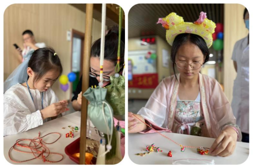 亲子互动制作五彩绳环节,彩绳在家长与孩子手中穿梭交织,每一个结都系满父母对孩子健康平安的美好期许,一根根承载着爱意的五彩绳,成为亲子间最温暖的节日纪念。一位家长感慨地说:“这次活动不仅让孩子学到了中医知识,还让我们和孩子有了更多的互动,感觉特别温馨。”
