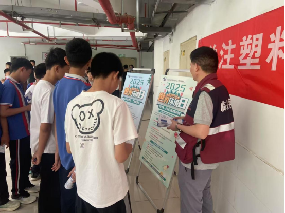 活动现场,浓厚的环保氛围扑面而来。黄龙学校的操场上,“减少塑料污染,共建美丽家园”的横幅迎风飘扬,图文并茂的环保展板有序陈列,生动展示着塑料污染的危害与应对方法。工作人员化身“环保使者”,将500余份精心编印的《绿色生活指南》宣传手册、印有环保标语的手提袋一一送到学生手中,孩子们捧着宣传资料,眼神中满是对环保知识的好奇与渴望。