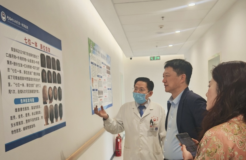 “‘七位一体、原位生发’技术的核心优势在于中西医结合激活休眠的毛囊!”尚智伟说。脱发成因复杂,单一治疗往往疗效不佳。该科通过中西医结合,既针对病因,又改善头皮微环境,同时激发毛囊再生潜能。目前,该科的中西医结合毛发治疗室已累计治疗患者超过7000名,取得了良好的临床疗效,备受患者好评。近年来,先后有安阳、濮阳、焦作、三门峡、新乡、许昌、商丘、周口等省内同仁及山东、陕西、新疆等地医院皮肤科同道来科室参观学习交流,得到了大家的广泛赞誉和一致肯定。