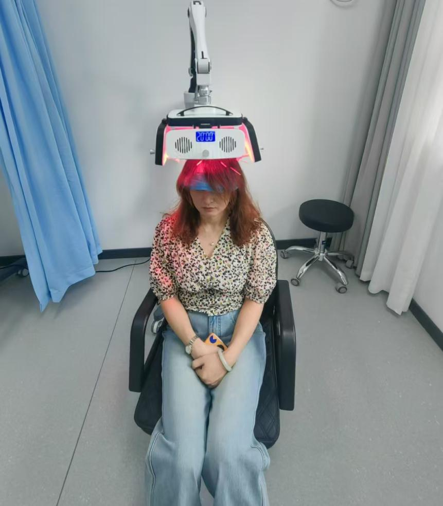尚智伟说,近年来,脱发问题日益年轻化,尤其是产后女性、高压职场人群等备受困扰。“许多患者尝试过偏方或高价生发产品,结果适得其反。”尚智伟强调,“七位一体、原位生发”的每一项治疗均以临床证据为基础,例如微针刺激联合红光照射,能显著提升毛囊细胞活性;中药熏蒸则选用何首乌、川芎、当归等药材,安全性较高且无副作用。此外,科室还配备毛发镜检查系统,可动态评估毛发生长状态,及时调整治疗方案。